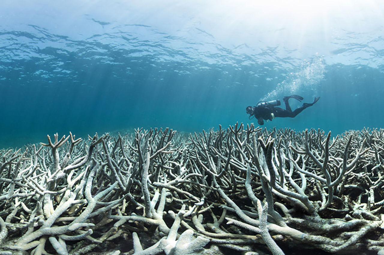 Main image: Coral bleaching on the Great Barrier Reef in 2015. Credit: Christophe Bailhache / Underwater Earth.